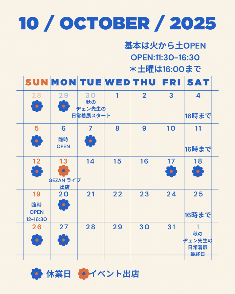秋のヂェン先生の日常着展と共に10月はお送りします🌕